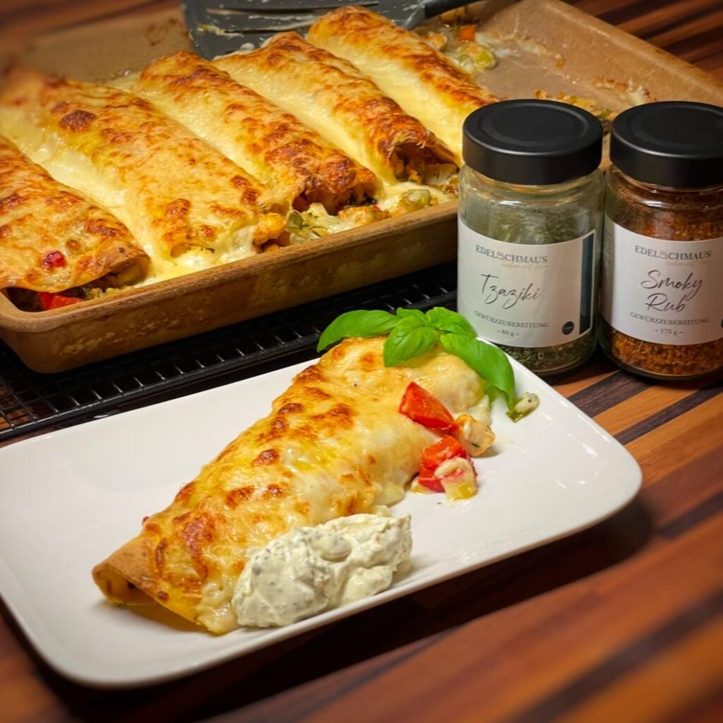 Gefüllte Tortilla-Wraps mit Knoblauch-Parmesan-Sauce