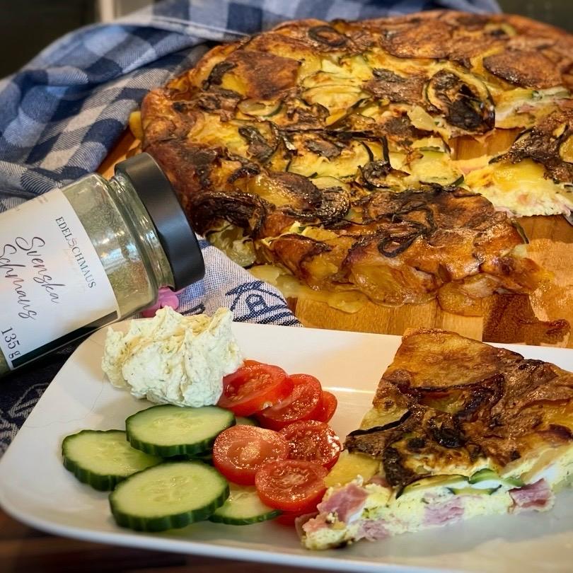Herzhafte Ofen-Frittata mit Kartoffeln, Zucchini & Schinken