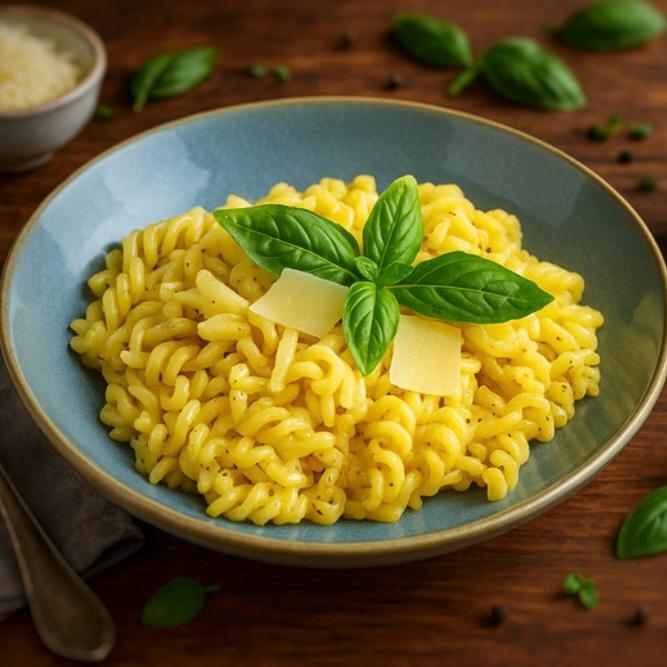 Cremige Kohlrabi pasta aus einer Pfanne