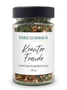Durch das bunte Farbspiel der Kräuter, Gemüse wie Paprika und Tomaten, Schwarzkümmel und Pfeffer ist diese Gewürzzubereitung nicht nur ein Fest für den Gaumen, sondern auch für´s Auge.