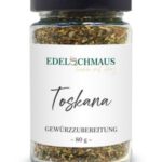 - Wenn die Pasta gar ist und das meiste Wasser aufgenommen wurde, Sahne, Zitronensaft, Parmesan und Toskana-Gewürz unterrühren.