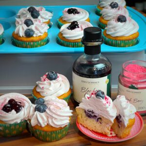 Zitronen-Cupcakes mit Heidelbeerfüllung und -Creme