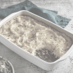 10. Gieße langsam die Sahne und das Wasser hinzu und rühre kräftig weiter.